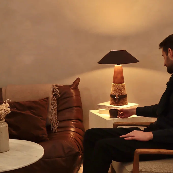 Comme un spectre élégant, cette lampe aux teintes mystérieuses transformera votre intérieur en un sanctuaire de puissance et de charme envoûtant. Cette lampe incarne toute la noblesse et la puissance du cheval frison, avec des matériaux soigneusement choisis pour refléter la beauté et la grâce de cette race emblématique. Le design combine la chaleur du bois, l'élégance du cuir et la profondeur du moiré pour créer un objet à la fois intemporel et raffiné. Ce mélange de matériaux nobles et de références subtiles à l'univers équestre fait de cette lampe un véritable objet d'art, à la fois fonctionnel et décoratif. Elle saura trouver sa place dans des intérieurs contemporains ou plus traditionnels, apportant une touche de luxe et de poésie inspirée de l'élégance des chevaux frisons.