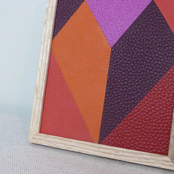 Marqueterie : Cuir de chèvre, cuir de vachette graîné, cuir de veau lisse.