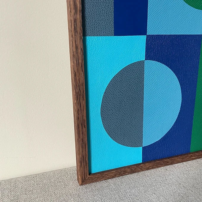 Marqueterie : Cuir de chèvre, cuir de vachette graîné, cuir de veau lisse, cuir de veau epsom.