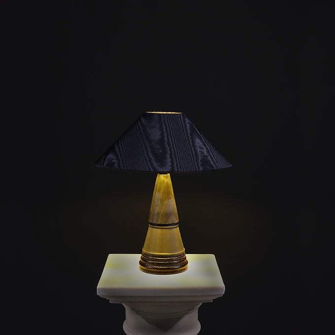 Évocation d’un univers mystique et contemporain, la lampe TOTEM mêle l’ombre et la lumière avec une touche d’élégance sauvage. Sa base noire, réalisée en cuir véritable et bois brûlé, est délicatement travaillée avec caractère, tandis que l'ajout de tissus moirés sur l'abat-jour apporte une texture raffinée et un effet lumineux unique. Le cuir, souple et robuste, contraste magnifiquement avec la douceur et la profondeur du moiré, créant un équilibre parfait entre naturel et sophistiqué. Cette lampe, s'intègre harmonieusement dans des espaces modernes ou plus traditionnels, apportant une touche de caractère, de confort et de spiritualité à votre intérieur. Parfaite pour un salon, une chambre ou un bureau, elle invite au voyage tout en étant un objet de décoration raffiné et intemporel.